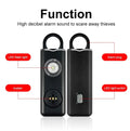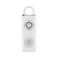 • Volume: 130 dB • Battery: 3.7V 130 mAh • Charging: USB-C • Alarm duration: 70 min • Flashlight duration: 240 min • Strobe duration: 300 min • Size: 100 × 31 × 13.5 mm • Weight: 28 g • Colors: Black / White • Reinforced impact-resistant structure